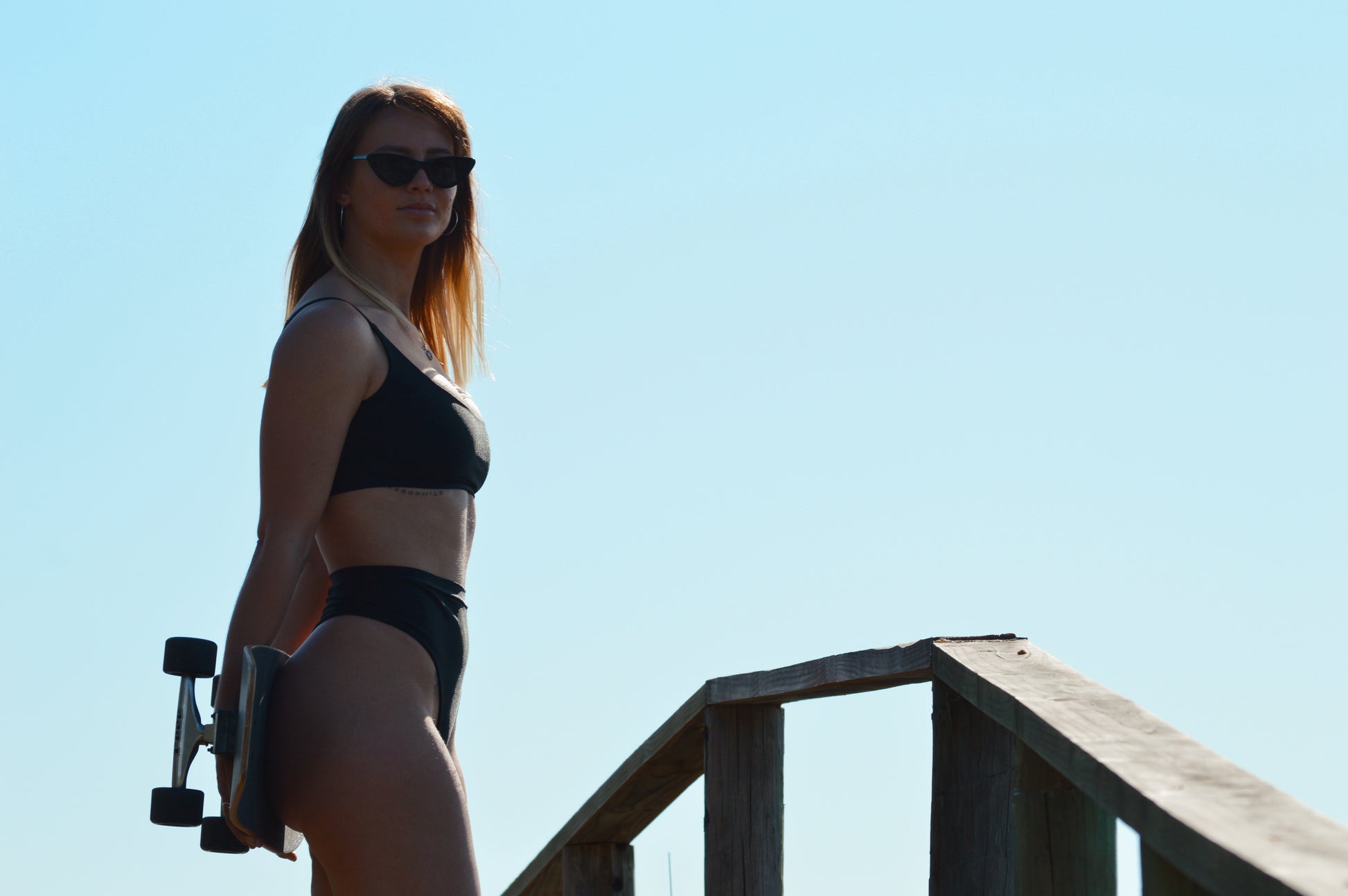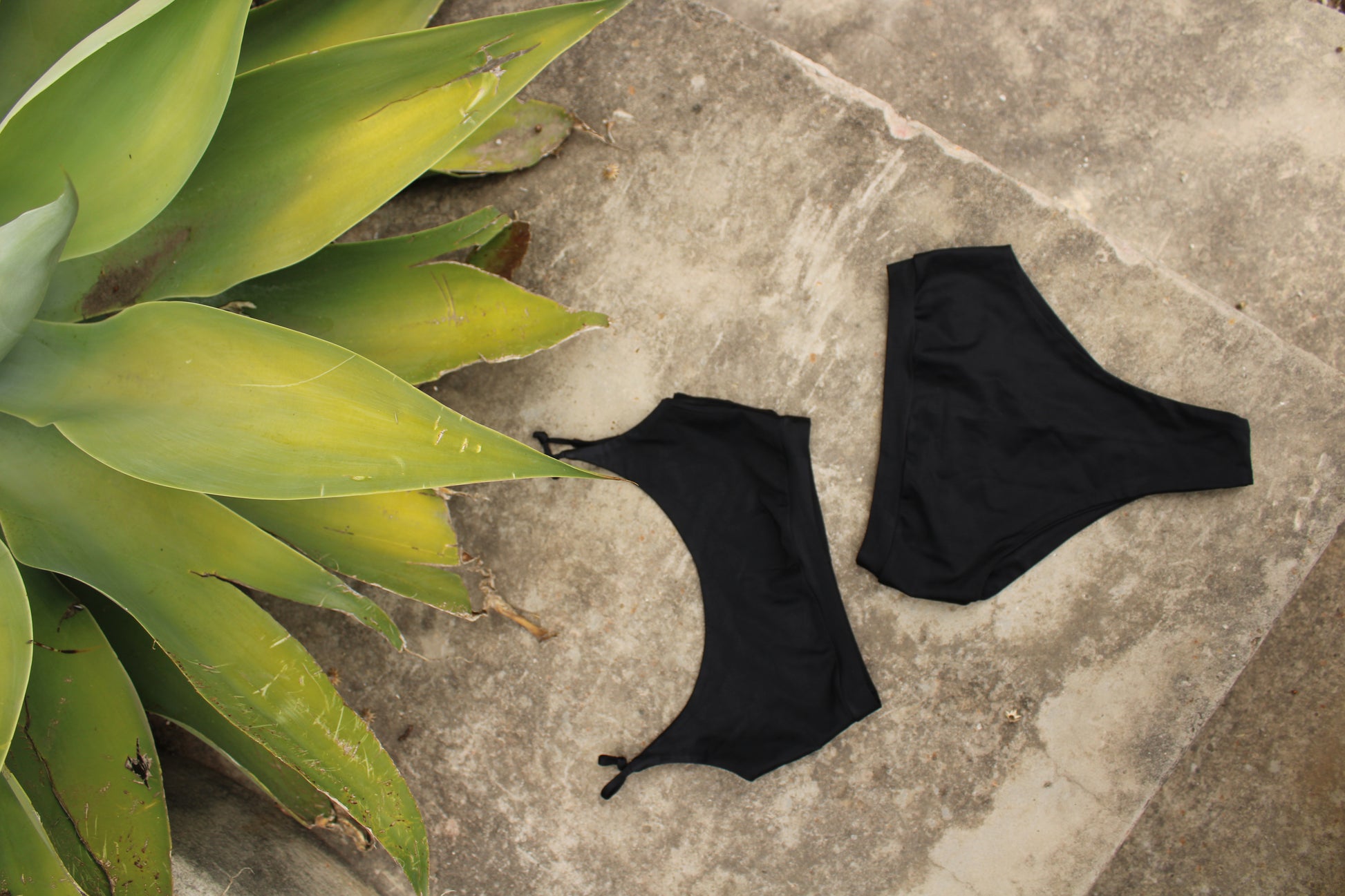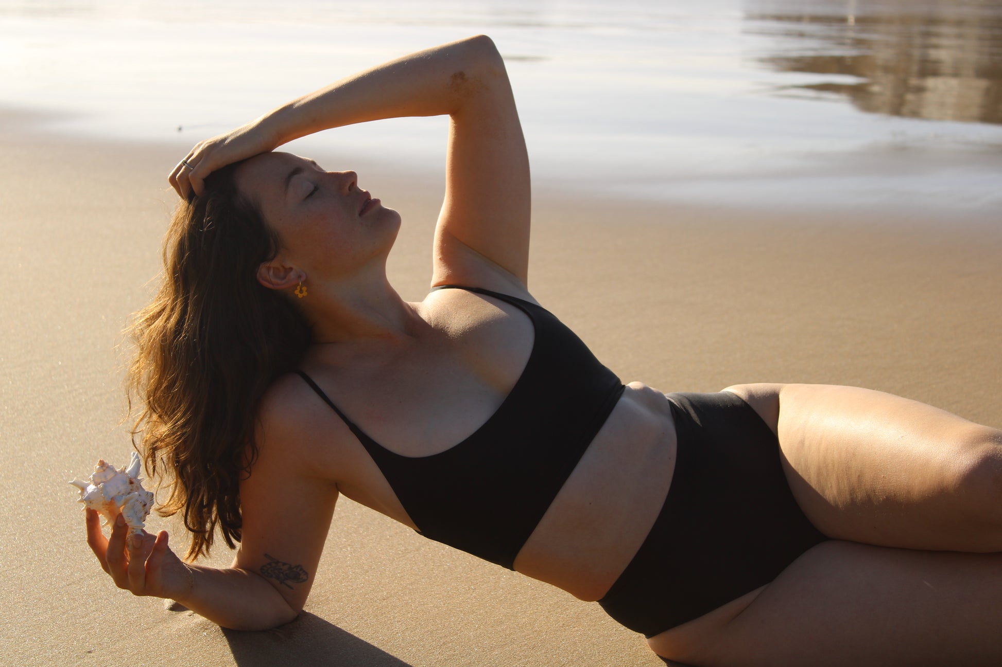 Our Cloud 9 set in the colour midnight has a high waisted designed bottoms with a Brazilian style for those who want a little more coverage. Our top offers a beautiful open back with a sporty front cut that comes with an extra tie accessory which allows you to transform the entire look. The extra tie can also be used as a hair accessory and is all made from the same fabric.